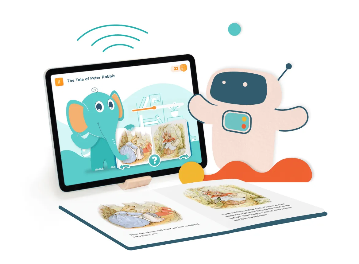 Ello helps early readers break down learning barriers by combining artificial intelligence and speech recognition technology to make Ello come to life. Ello is a revolutionary state-of-the-art interactive reading buddy who listens to your child read out loud. Ello provides support when your child needs help reading, gentle corrections when they make errors, and motivation to keep your child engaged. Appropriately leveled books will be automatically loaded into the app for you!